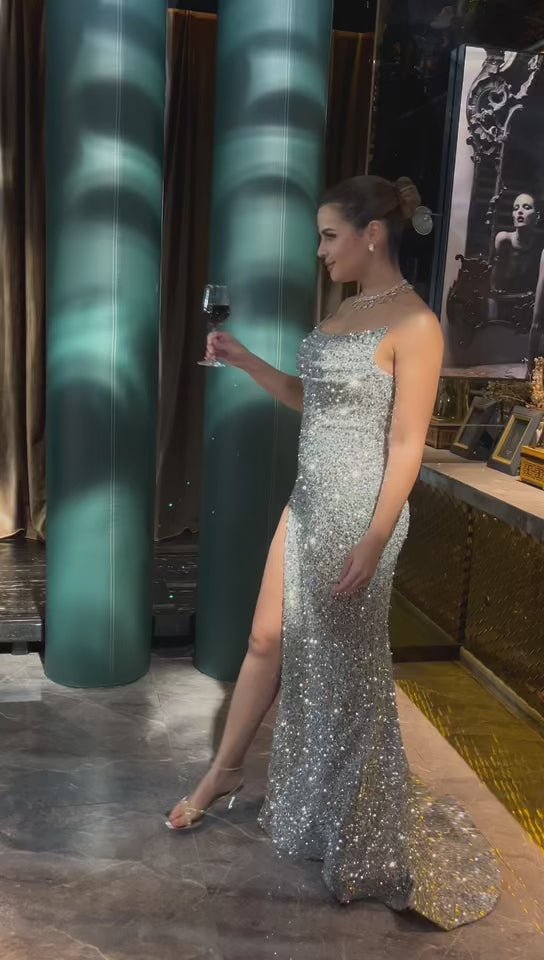 Callie Diamond Sequin Halterneck Mesh Sheer Dress